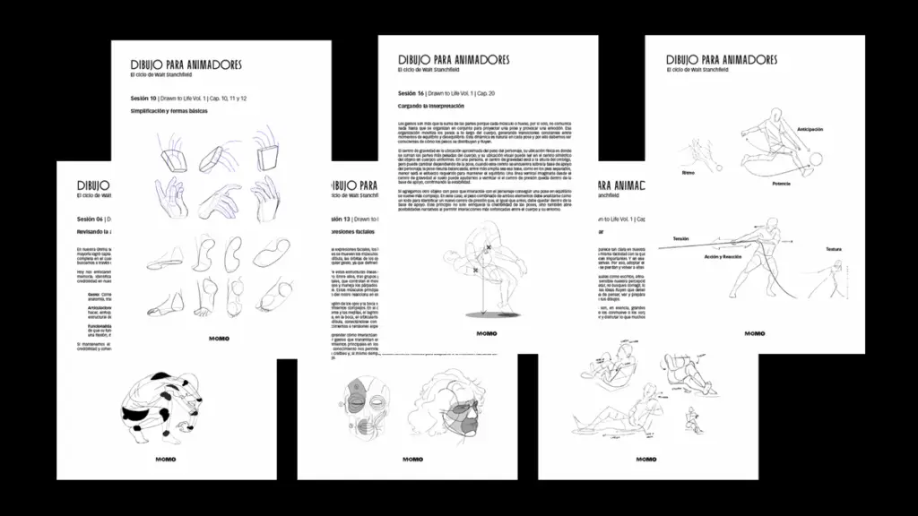 En Dibujo para Animadores, cada sesión cuenta con una guía de trabajo única que no se repite y que orienta el enfoque del día. Estas guías establecen los objetivos de cada pose y dirigen el ejercicio hacia principios específicos del dibujo gestual, permitiendo un avance ordenado y consciente. Están diseñadas para que la clase sea puntual, provechosa y conectada con un recorrido progresivo por los fundamentos del dibujo para animación. Cada guía se basa en el libro de estudio del ciclo en curso, asegurando que el aprendizaje sea coherente, práctico y aplicado al lenguaje visual del animador.